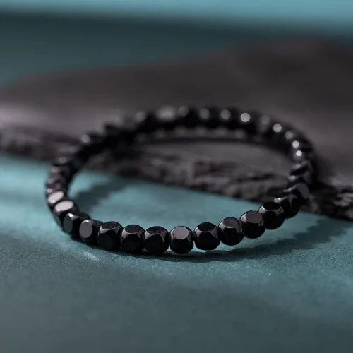 Natural Black Agate Hexagonal Bead Bracelet Unisex Couple Design