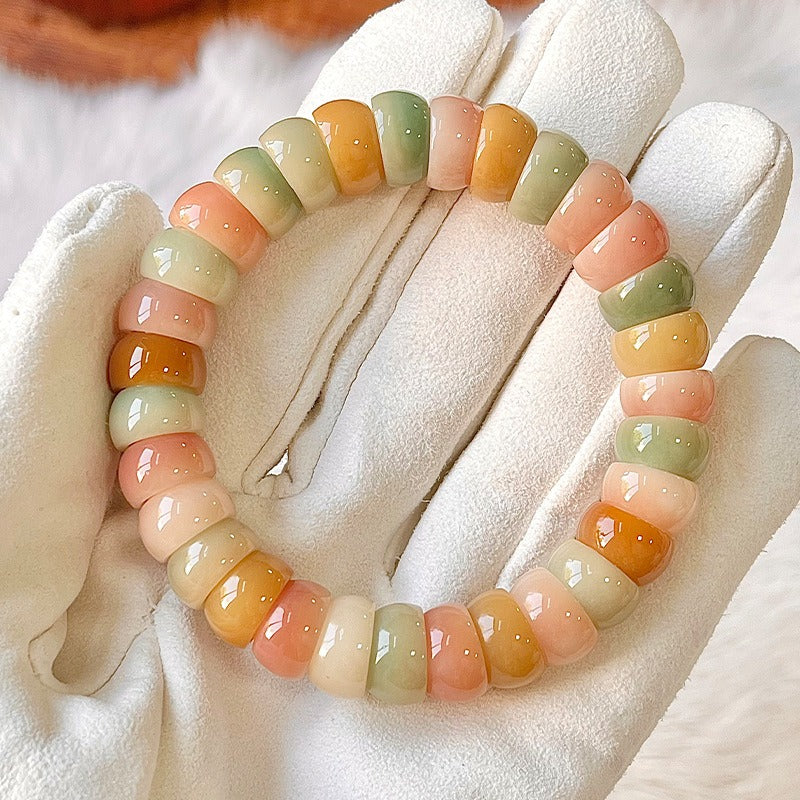 Our vibrant Candy Bowl Bodhi Bracelet is designed to calm the mind and delight the eyes. Handcrafted from natural Bodhi seeds, each bracelet is truly one of a kind—featuring slight color variations that reflect the organic nature of the material. The 12mm bowl-shaped beads shine with colorful, glass-like beauty and a smooth finish that becomes even glossier the more you fidget. Whether worn as jewelry or used as a calming tool, it’s the perfect fusion of style and serenity.