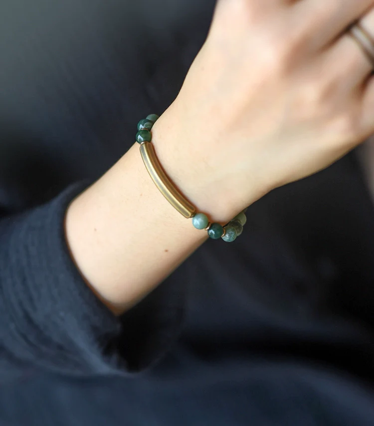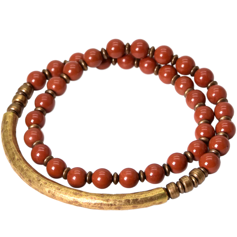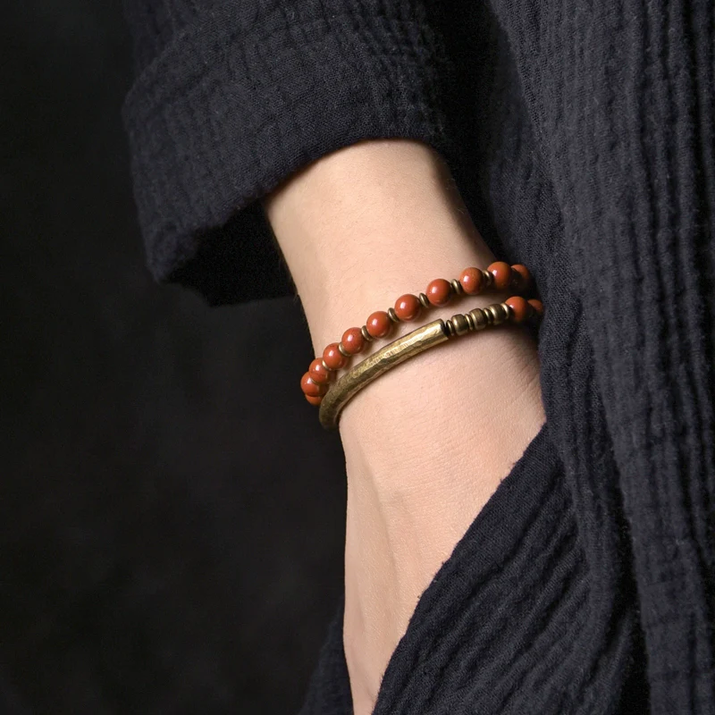 A harmonious fusion of natural gemstones and Tibetan vintage elements, this multi-layered bracelet combines the deep vitality of red jasper, the protective energy of black obsidian, and the grounding strength of agate, finished with rustic brass accents for a bold, balanced look.