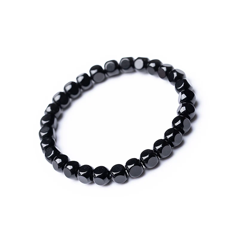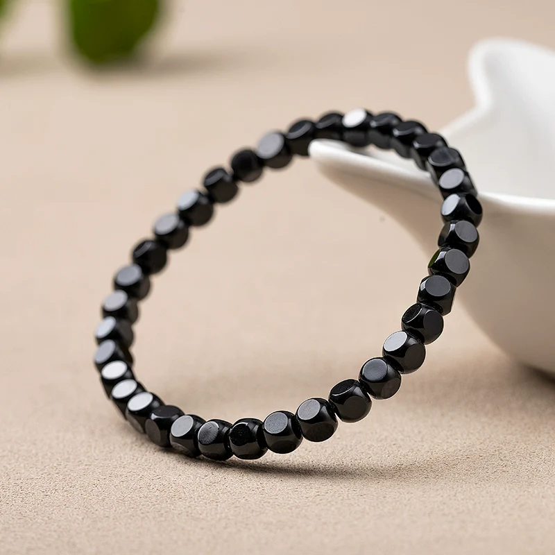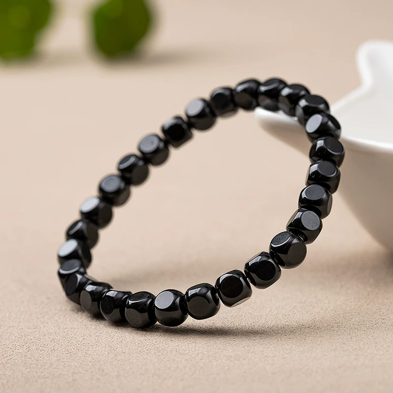 Natural Black Agate Hexagonal Bead Bracelet Unisex Couple Design