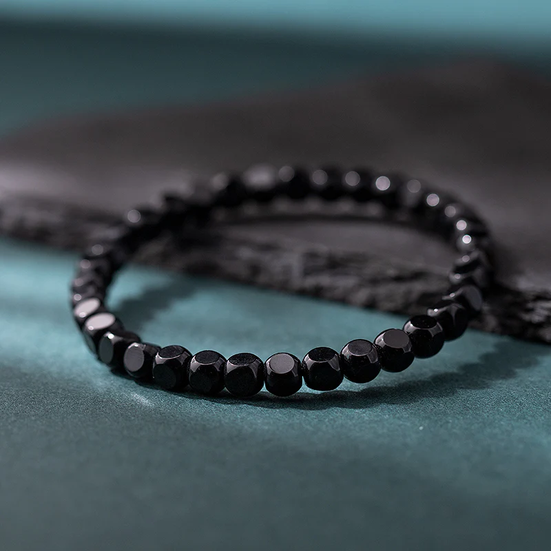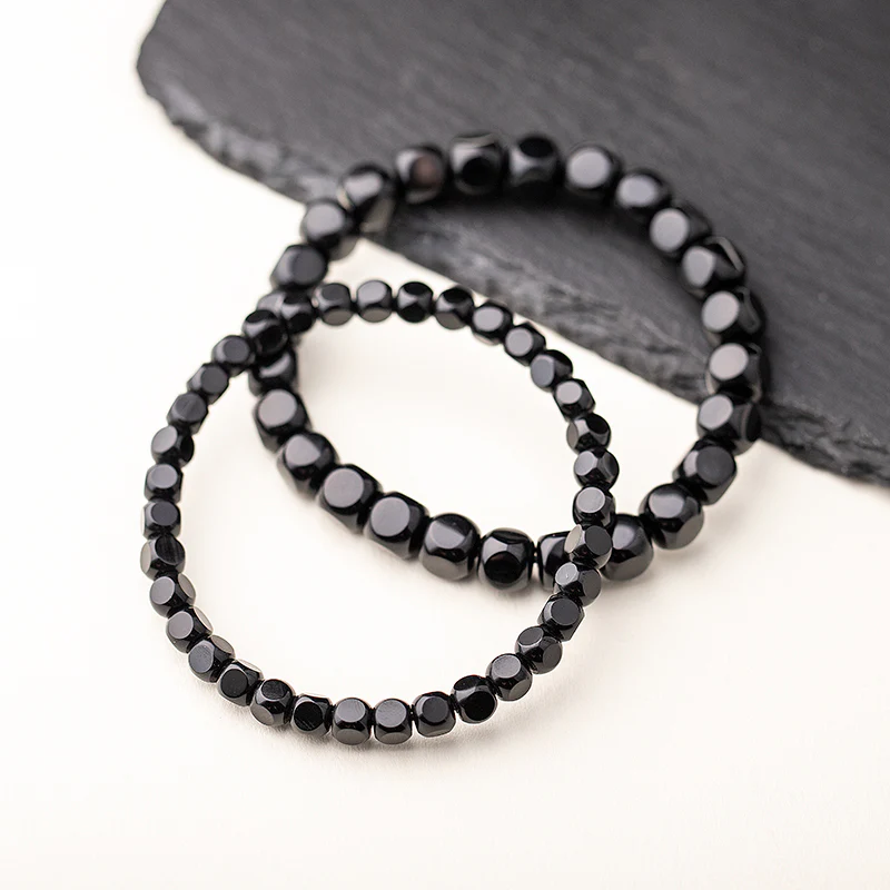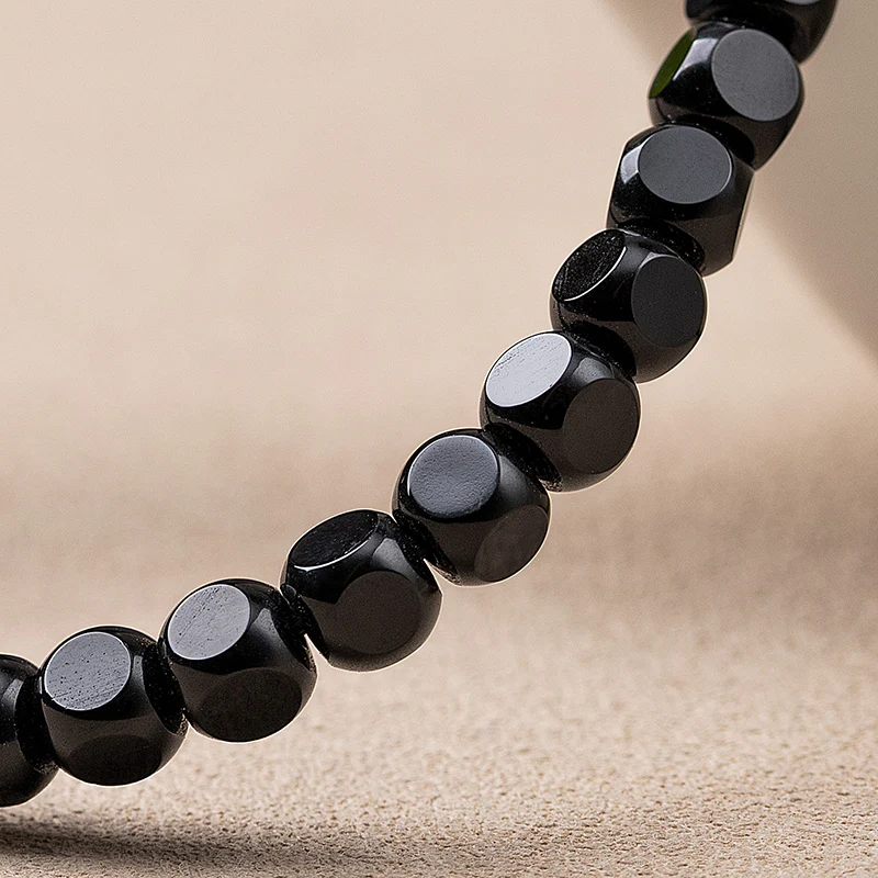 Our Natural Black Agate Bracelet features finely crafted straight-cut hexagonal beads. Designed as a unisex couple bracelet, it exudes a bold, stylish charm suitable for both men and women.