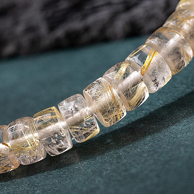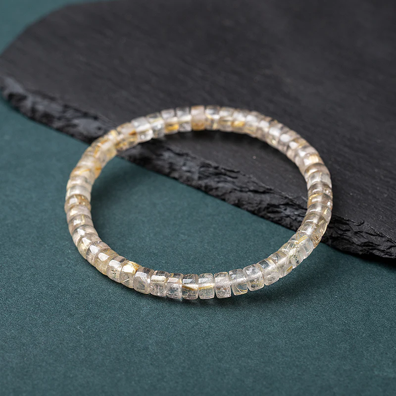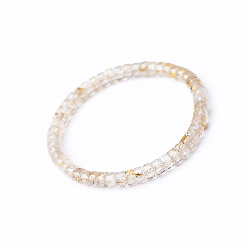 Natural Crystal Rutilated Quartz Bracelet – Precision Cut 3x6mm Beads