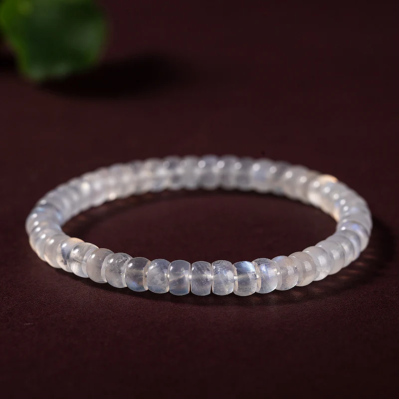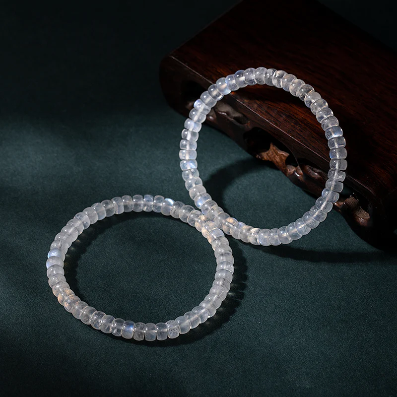 Natural Sri Lankan White Moonstone Straight-Cut Beaded Bracelet – Elegant Gift for Her